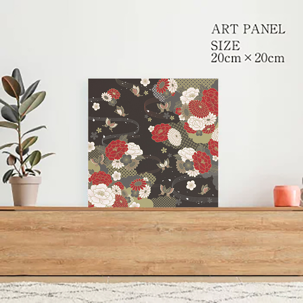 アートパネル 牡丹に舞う黒
