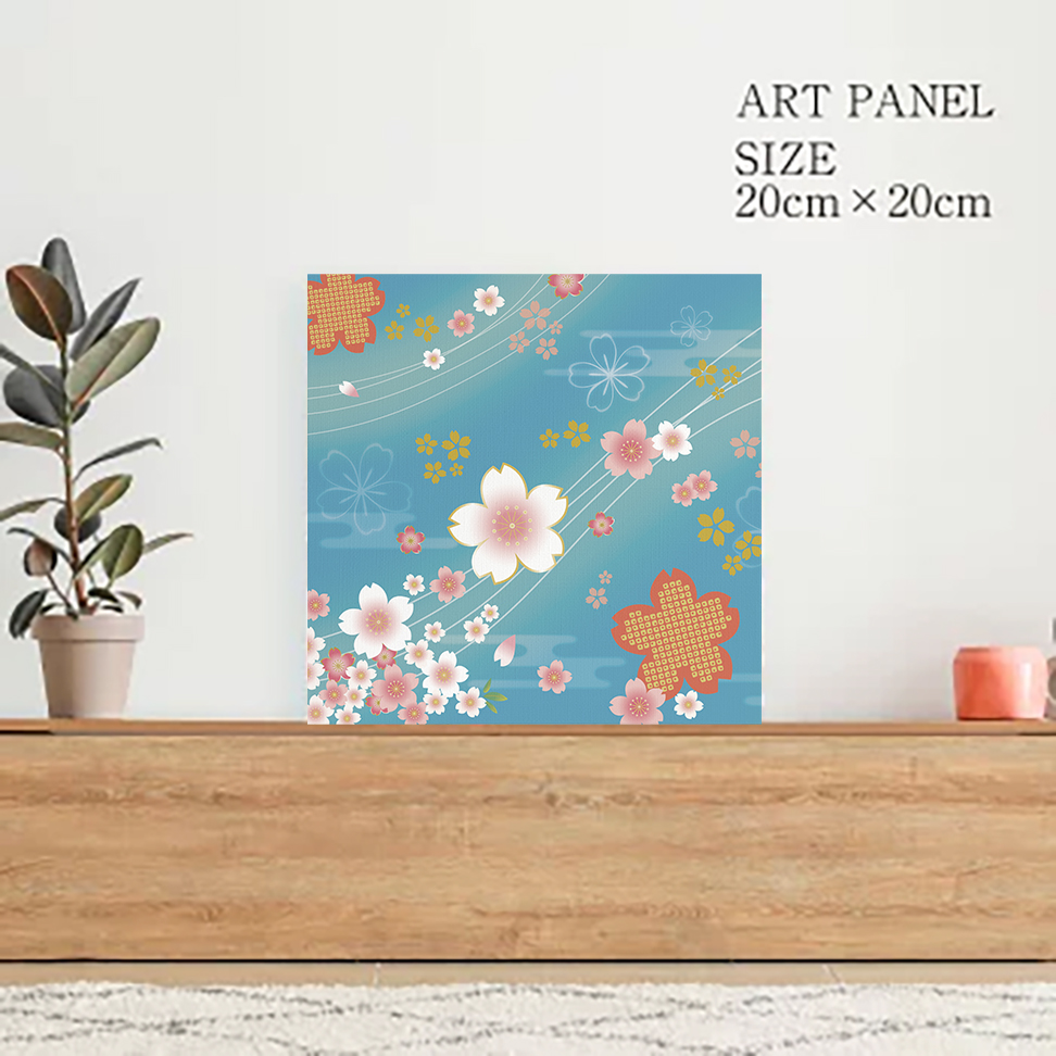 アートパネル 着物柄 桜 浅葱色
